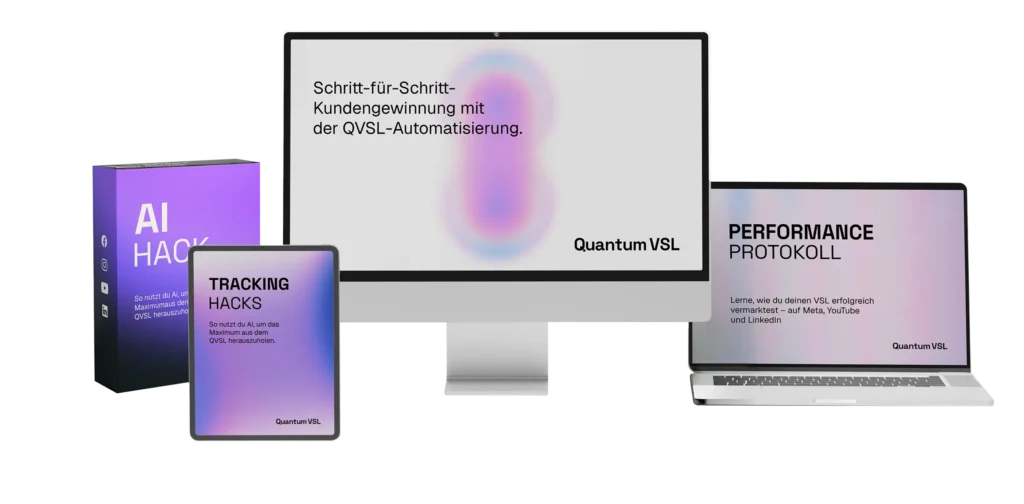 Du brauchst ein Skript, Slides, Voiceover, mehr nicht. Du siehst im Training Tool-Tipps & Vorlagen. Das Ziel ist: Version 1 schnell live zu bringen, frühe KPIs zu sammeln, dann iterieren. Ein Quantum VSL hat eine Länge zwischen 5 und 17 Minuten.